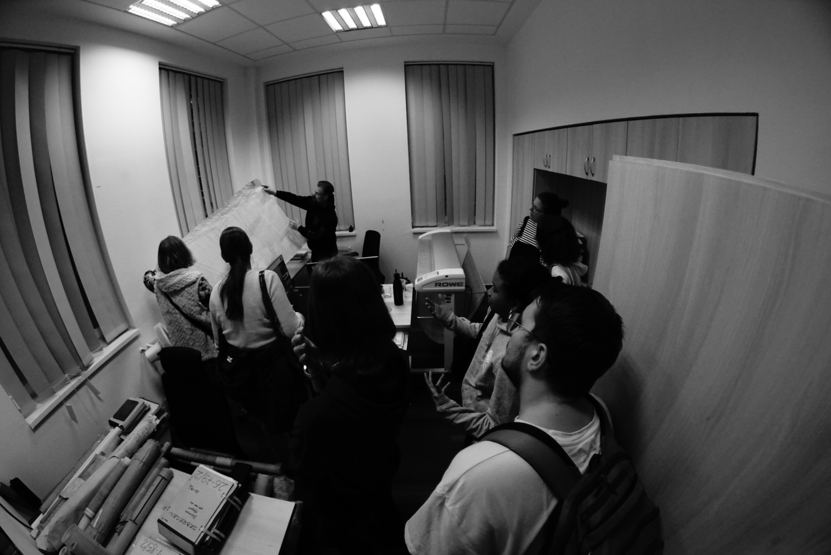 A Kutatók Éjszakáján két új programmal „debütáltunk”: elsőként digitalizáló kollégáink kerültek főszerepbe, és egy irányított beszélgetés segítségével mutatták be a tervtár és a fotótár történetét, a szkennelés kulisszatitkait. A program végén lehetőség volt megnézni magukat a gépeket is működés közben, illetve a különféle formátumú negatívokat is kézbe vehették az érdeklődők, természetesen fehér cérnakesztyűben.