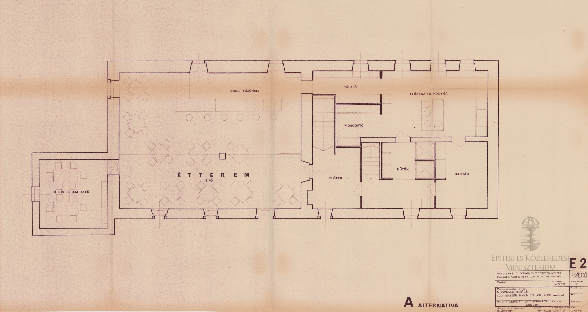 Mosonmagyaróvár, volt Sultzer-malom felhasználási javaslata. I. emelet. „A” alternatíva – Grillbár - Dokumentációs Központ/Tervtár/VÁTI gyűjtemény