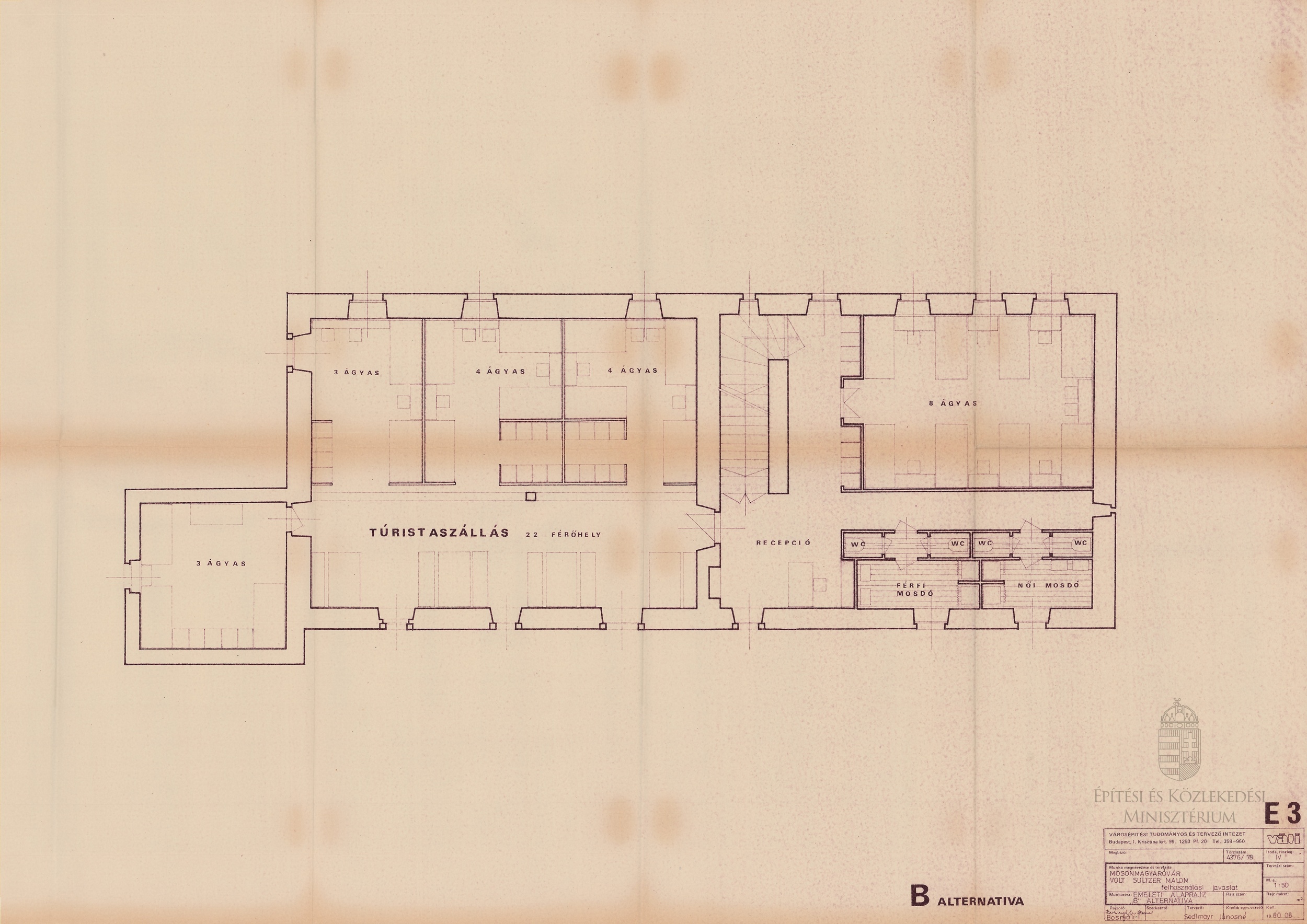Mosonmagyaróvár, volt Sultzer-malom felhasználási javaslata. Emeleti alaprajz. „B” alternatíva - Dokumentációs Központ/Tervtár/VÁTI gyűjtemény