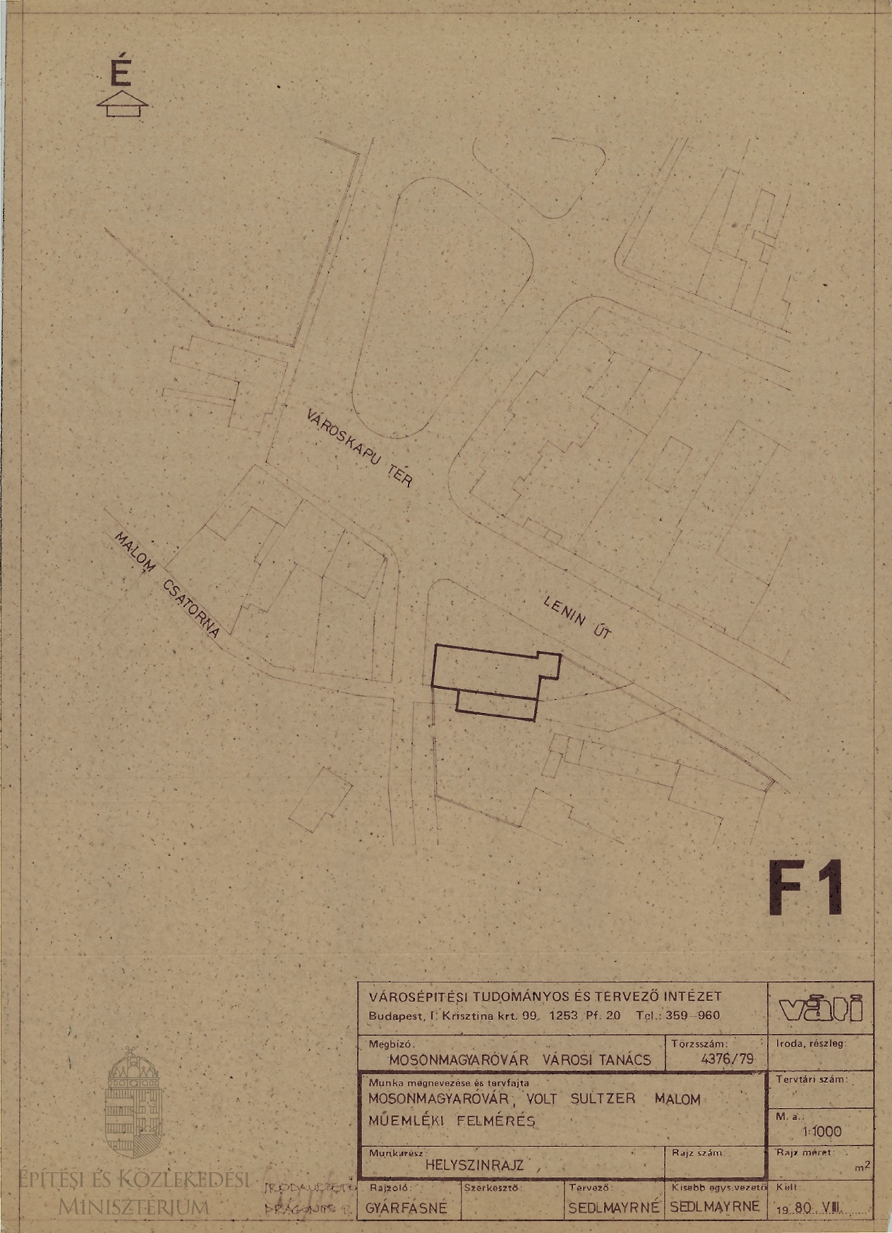 Mosonmagyaróvár, volt Sultzer-malom műemléki felmérés. Helyszínrajz - Dokumentációs Központ/Tervtár/VÁTI gyűjtemény