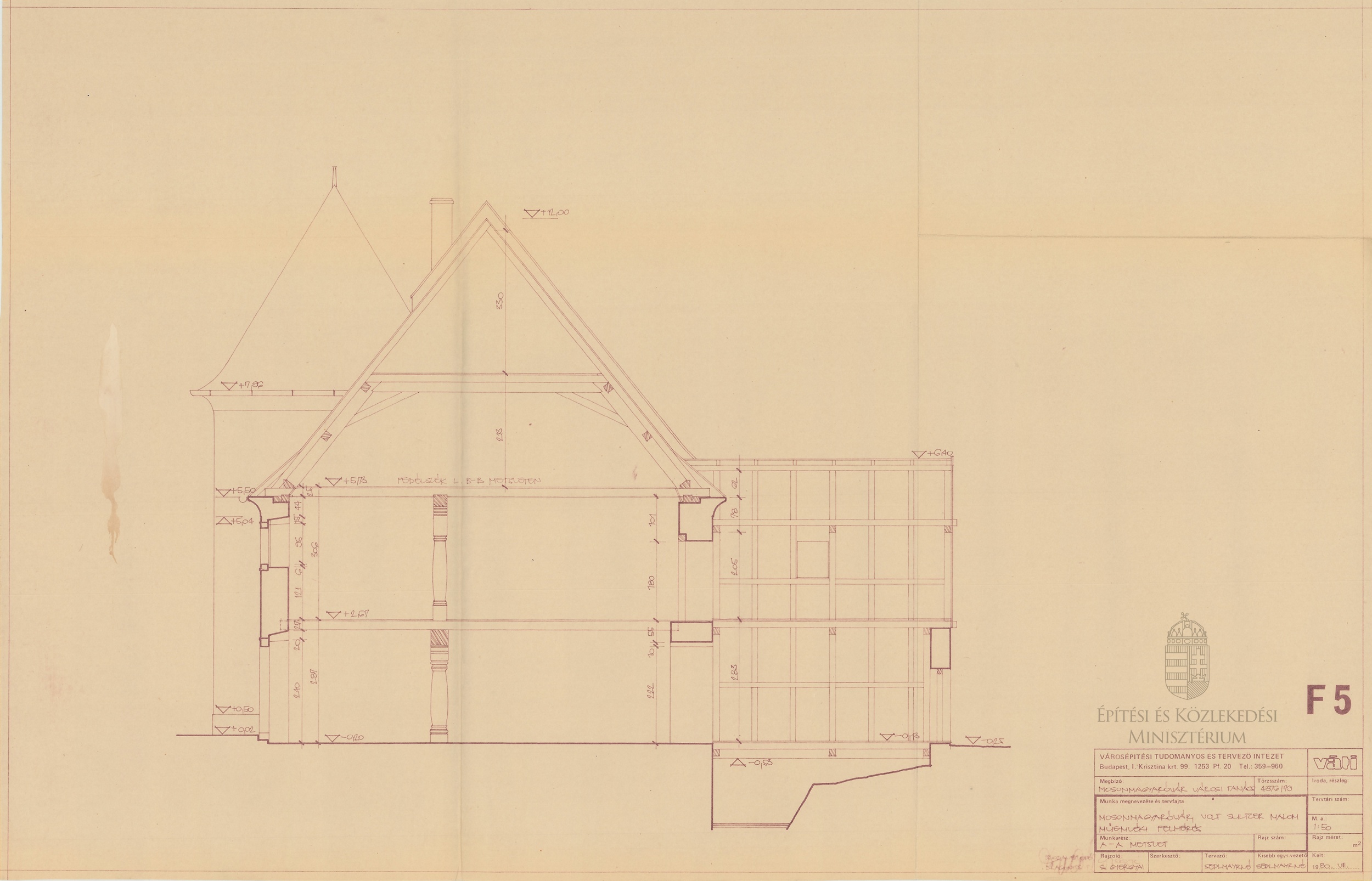 Mosonmagyaróvár, volt Sultzer-malom műemléki felmérés. A-A metszet - Dokumentációs Központ/Tervtár/VÁTI gyűjtemény