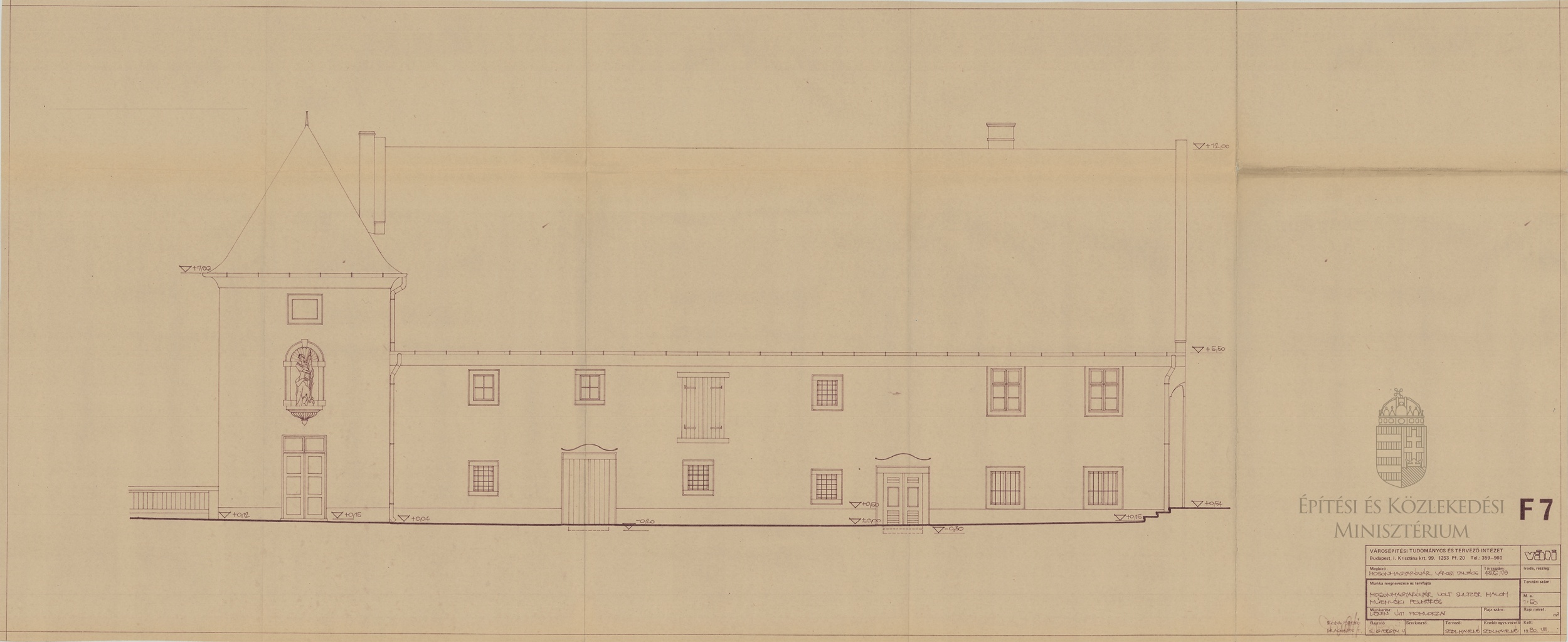 Mosonmagyaróvár, volt Sultzer-malom műemléki felmérés. Fő utcai homlokzat (akkor Lenin út) - Dokumentációs Központ/Tervtár/VÁTI gyűjtemény